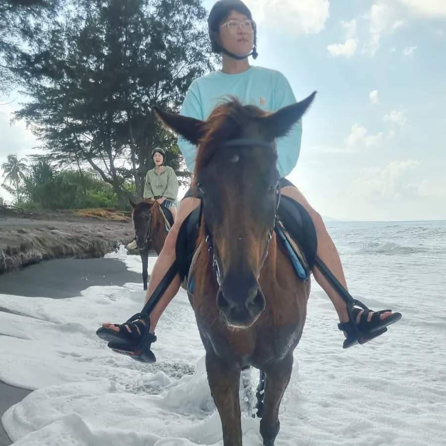Enjoy your holiday by Riding Horse in Bali Islands to see the amazing panorama view on horseback and turn other people's dreams into reality. After arriving and welcome at the Horse stable, you will receive a full safety breafing from professional and experience horse riding guide before embarking a memorable horse riding adventure. The horse riding trail has been set on the beautiful beautiful sand on the beach with thundering wave sound. Your Bali Horseback Riding Tour more enjoyable with our friendly and professional Bali Horse Riding tour guide. Enjoy riding a horse on the island of Bali through the beautiful beach with black sand which is very tempting, and the rustle of the wind and waves makes the atmosphere even more enjoyable, so what are you waiting for, want to ride a horse in Bali, contact us immediately and we will prepare everything for you