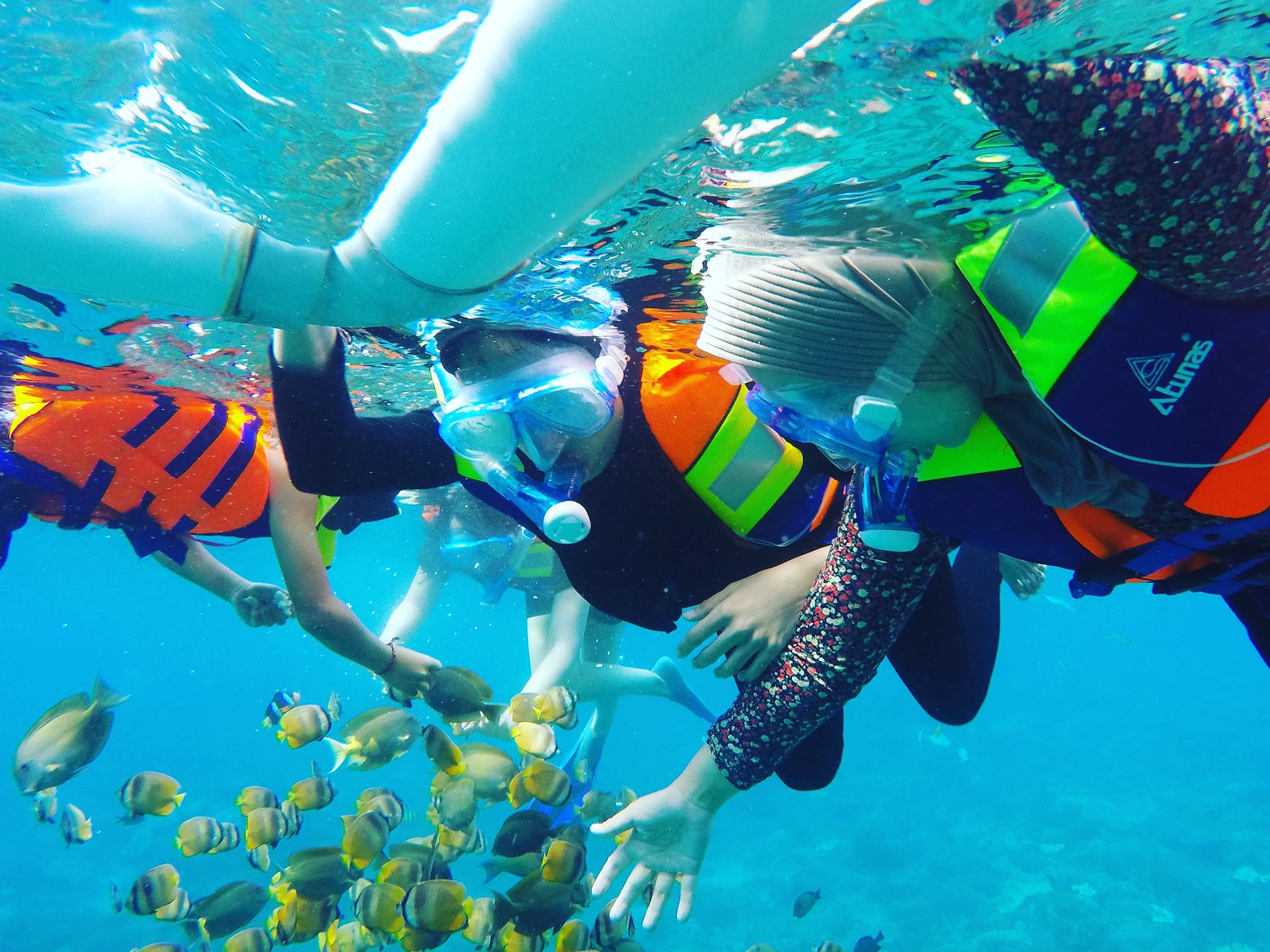 This particular snorkeling spot faces a very crowded beach, but this is also where the best area for viewing the hidden coral.