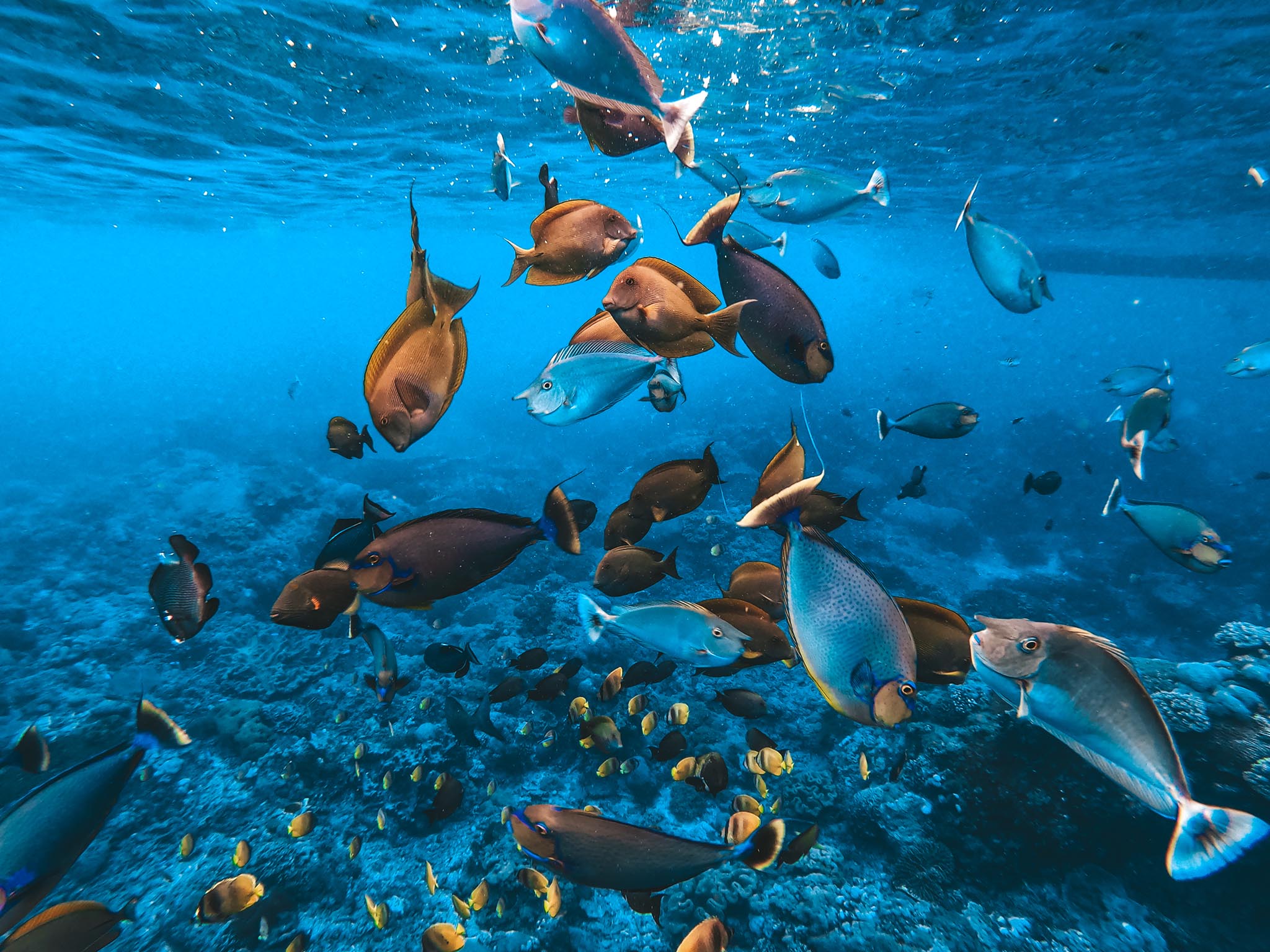 Marine life is somewhat limited in Crystal Bay, but snorkelers will still spot surgeons, butterfly fish and a variety of other reef fish.